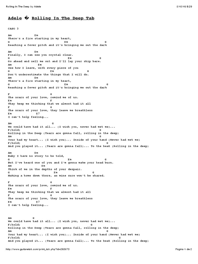 Chord Rolling In The Deep Adele Tab Song Lyric Sheet Guitar Ukulele Chords Vip